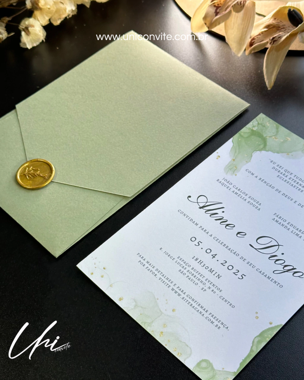 Sofisticação e Delicadeza: Este convite é a escolha ideal para casais que desejam deixar uma impressão inesquecível em seus convidados. Com um design elegante, ele transmite uma mensagem de classe e delicadeza.